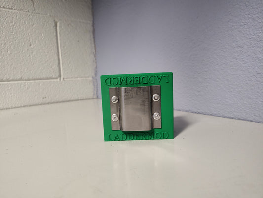LadderMod (GREEN) is designed to slide into the front, back, right, or left side rail of a standard ladder.