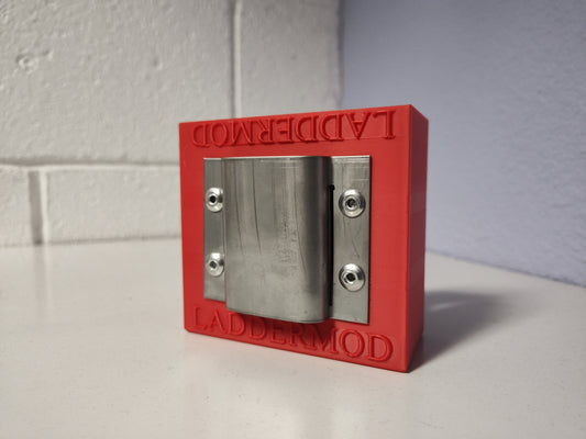 LadderMod (RED) is designed to slide into the front, back, right, or left side rail of a standard ladder.